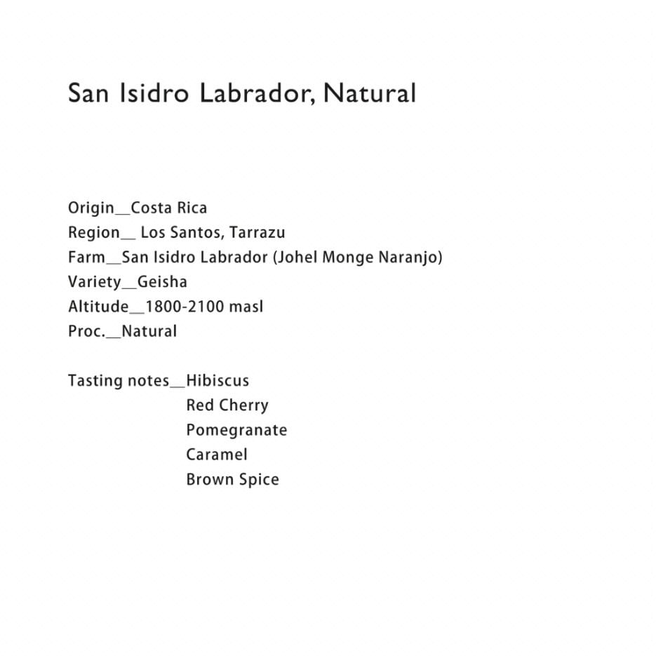 2012年、ジョエル氏とその息子マティアスは、Copey, Quebradillas de Dotaと呼ばれる地ににゲイシャ種とティピカ種の木を植え始めました。しかし、コーヒーの実の販売は生産性や品質、価格などの風通しがあまり良くないことに気づきます。そこで誕生したのが自身でコーヒーの栽培からの実の加工まで全てのプロセスを一貫して行う農園、Acienda San Isidro Labradorでした。
